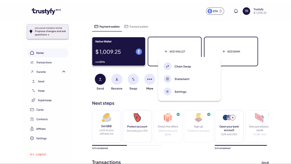 Individual and corporate crypto accounts, crypto-friendly bank accounts, and cards, all integrated in one place, for seamless international payments, purchases, and exchange at a fraction of the cost.